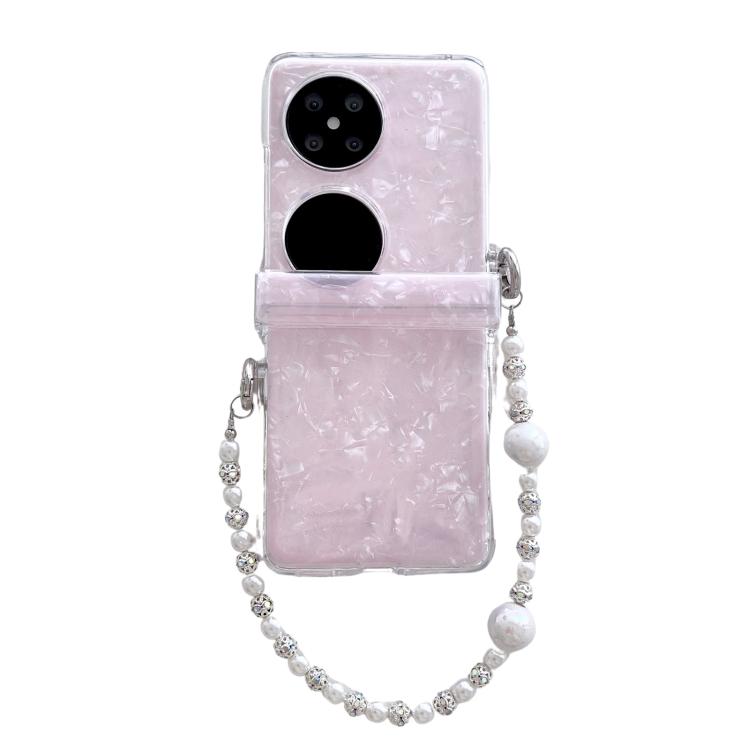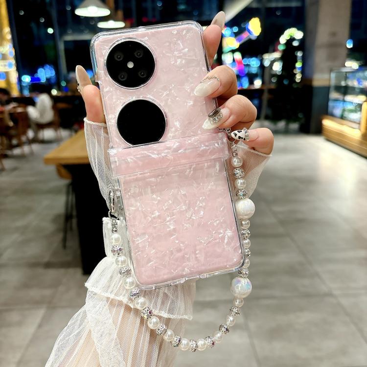 Funda para Teléfono Huawei P50 Pocket con Textura Perlada en Tres Partes y Pulsera (Rosa)