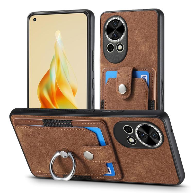 Funda para Teléfono Huawei Nova 13 Pro con Tarjetero y Anillo Tacto de Piel (Marrón)