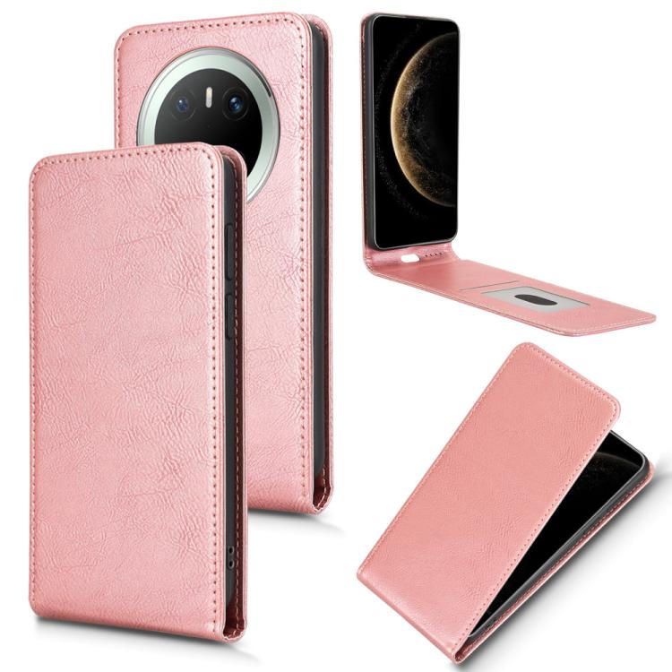 Funda de Cuero con Tapa Vertical Magnética para Huawei Mate 70 (Oro Rosa)