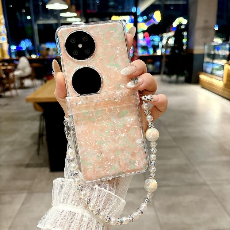 Funda para Teléfono Huawei Pocket 2 Textura Concha Perlada Tres Piezas con Pulsera (Rosa)