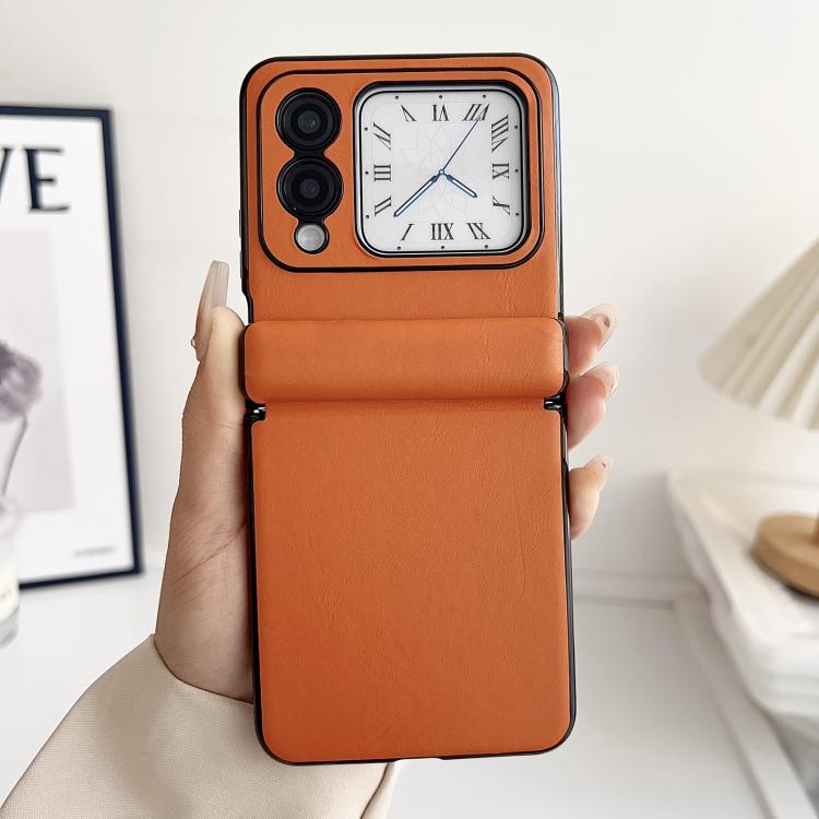 Funda de Cuero para Huawei Nova Flip con Textura y Eje Magnético Integrado (Naranja)