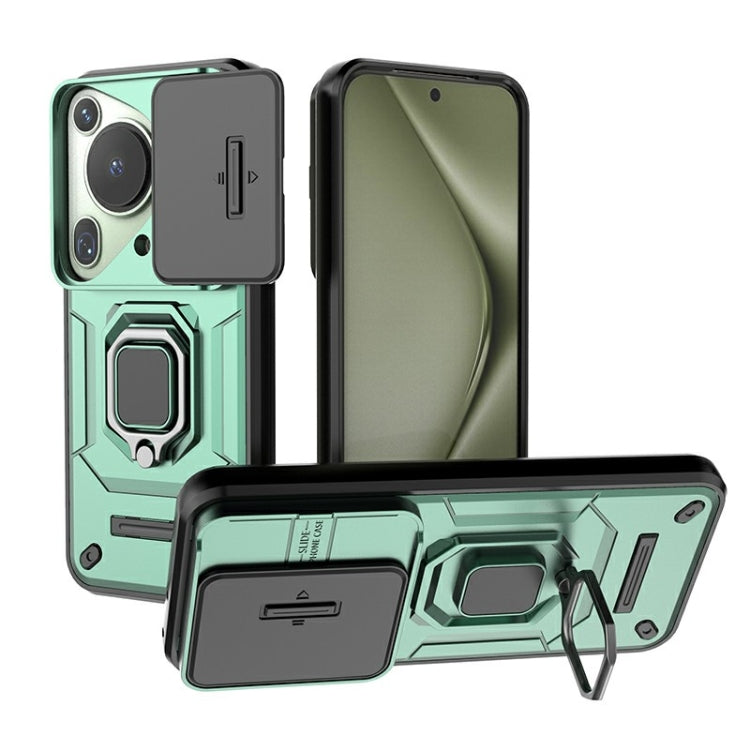 Funda para Huawei P70 Art 5G con Sliding Camshield TPU + PC a Prueba de Golpes con Soporte (Verde)