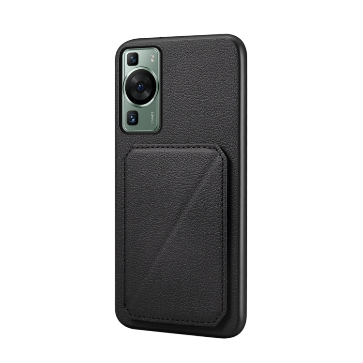 Funda para Huawei P60 y P60 Pro D04 con Ranura para Tarjeta Dual y Textura de Pantorrilla (Negro)