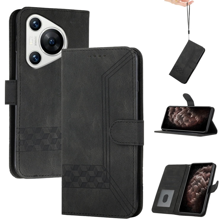 Funda de Cuero con Tapa para Huawei Pura 70 Cubic Skin Feel (Negro)