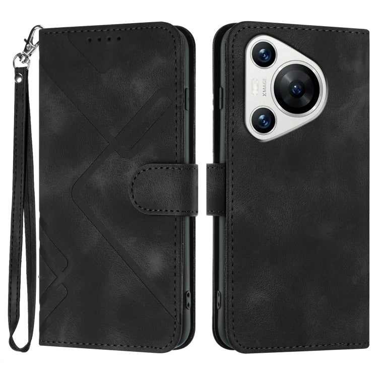 Funda de Cuero para Huawei Pura 70 Pro y 70 Pro+ con Patrón de Líneas y Sensación de Piel (Negro)
