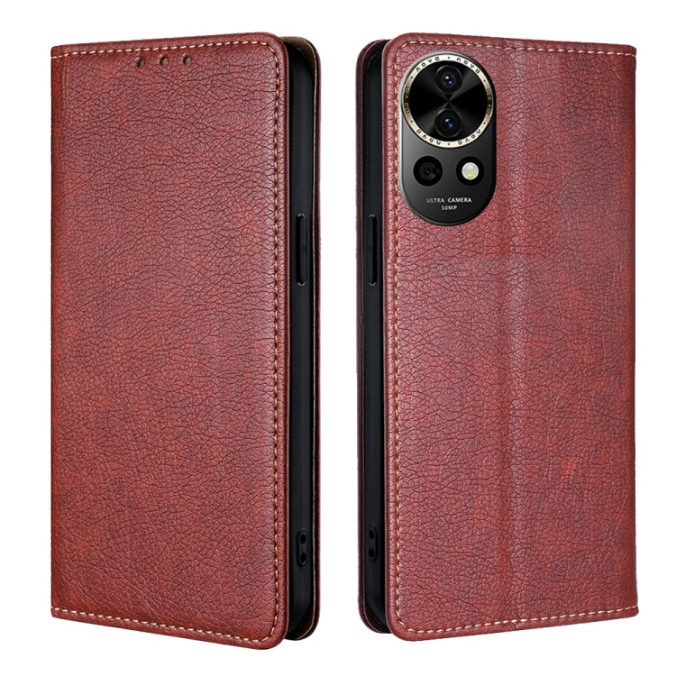 Estuche para Huawei Nova 12 5G de Cuero Magnético con Aceite Brillante (Marrón)