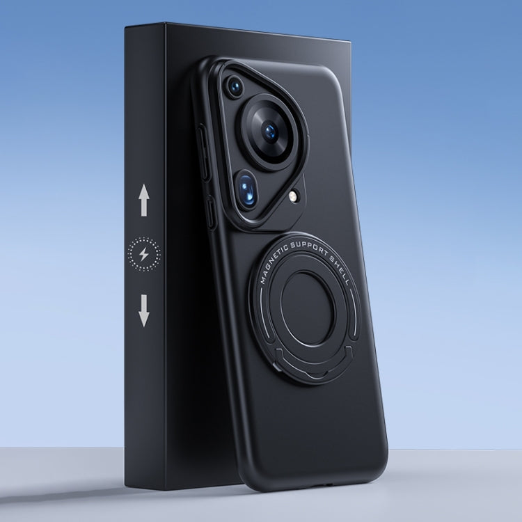 Funda para Huawei Pura 70 Ultra Frosted Magsafe con Soporte de Anillo Magnético para Teléfono (Negro)