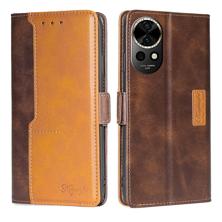 Funda de Cuero para Huawei Nova 12I 4G con Hebilla Lateral en Contraste (Marrón Oscuro + Dorado)