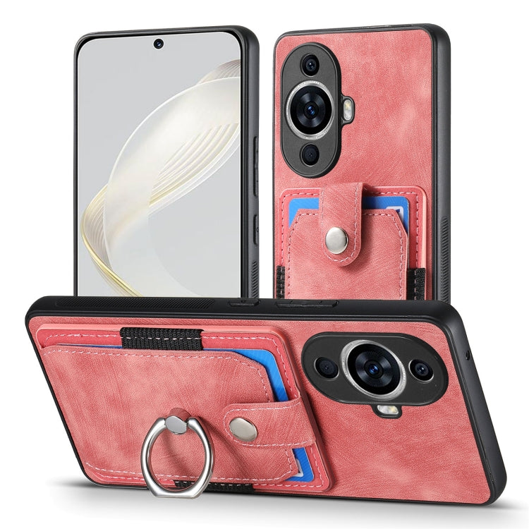 Funda para Huawei Nova 11 con Billetera, Tarjeta y Anillo con Piel Retro (Rosa)
