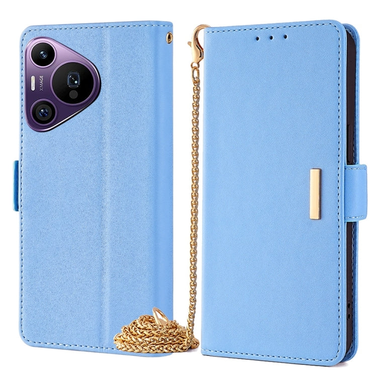 Funda de Cuero para Huawei Pura 70 Pro y 70 Pro + 5G con Cadena Cruzada (Azul)