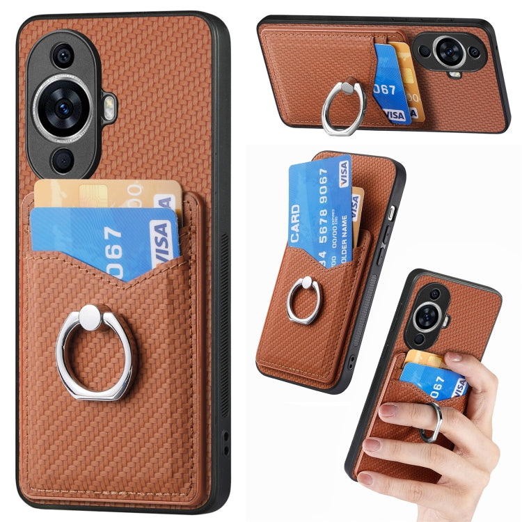 Funda para Huawei Nova 11 con Anillo y Billetera con Tarjeta de Fibra de Carbono (Marrón)
