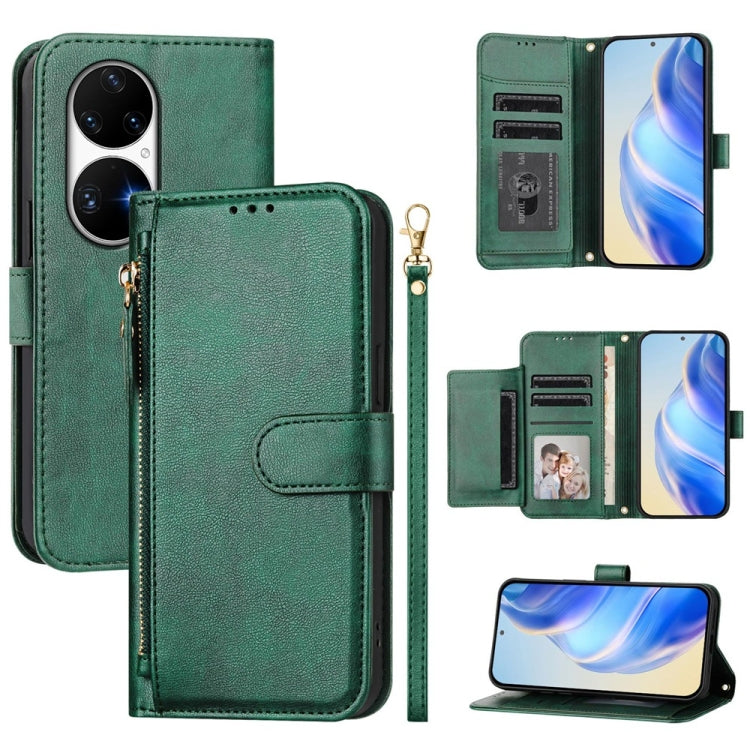 Funda de Cuero con Cremallera y Ranuras para Tarjetas para Huawei Pura 70 Pro/Pura 70 Pro+ (Verde)