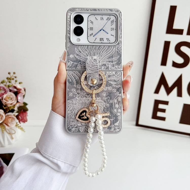 Funda para Teléfono Huawei P50 Pocket con Bordado de Nubes Propicias y Cobertura Total (Gris)