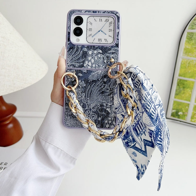 Funda para Teléfono Huawei Nova Flip con Cobertura Total y Estilo Bordado con Bufanda o Pulsera (Azul)