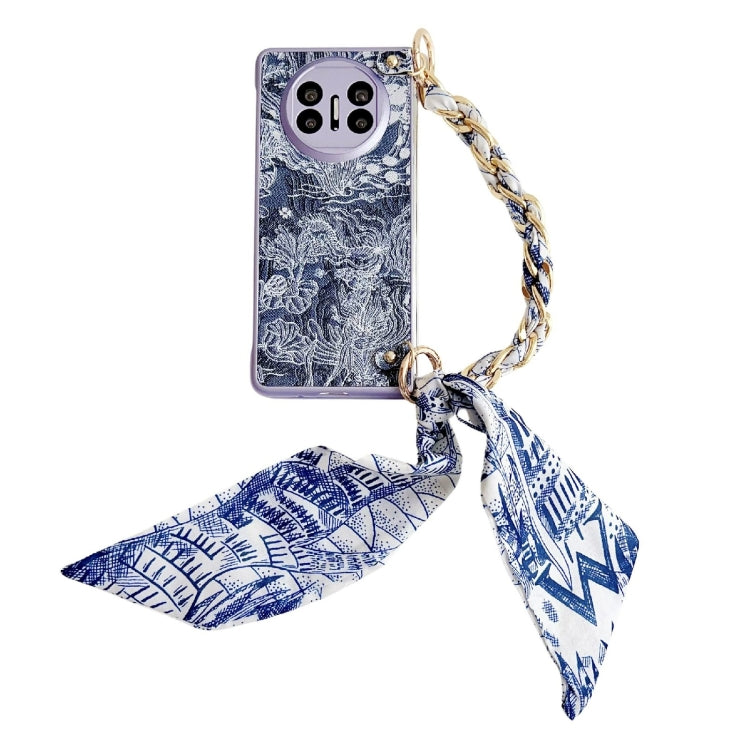 Funda para Teléfono Huawei Mate X3/X5 Bordado Diy Cobertura Total con Bufanda y Pulsera (Azul)
