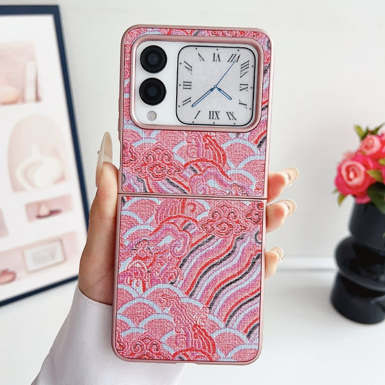 Funda para Teléfono Huawei P50 Pocket con Bordado de Nubes Propicias y Cobertura Total (Roja)