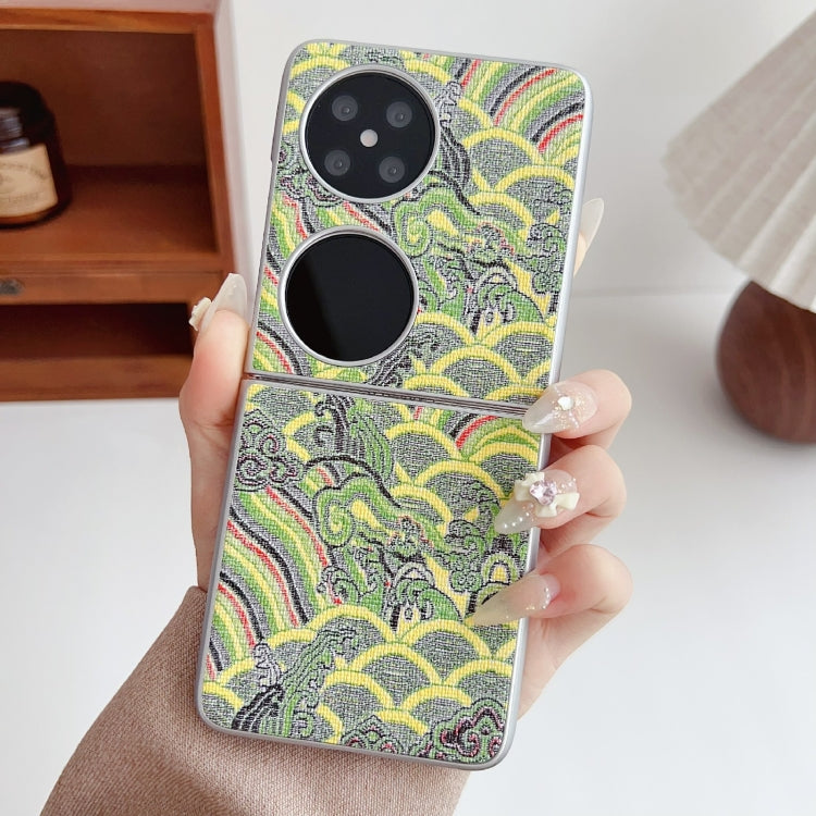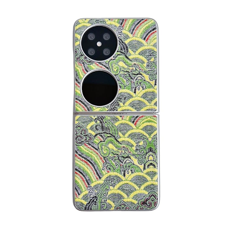 Funda para Teléfono Huawei P50 Pocket con Bordado de Nubes y Cobertura Total (Verde)