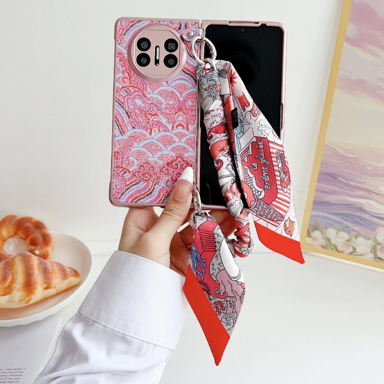 Funda para Teléfono Huawei Mate X3/X5 con Cobertura Total, Bordado Nubes, Bufanda y Pulsera (Rojo)