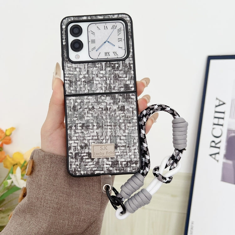 Funda para Teléfono Huawei Nova Flip con Textura de Tejido y Correa (Negra)