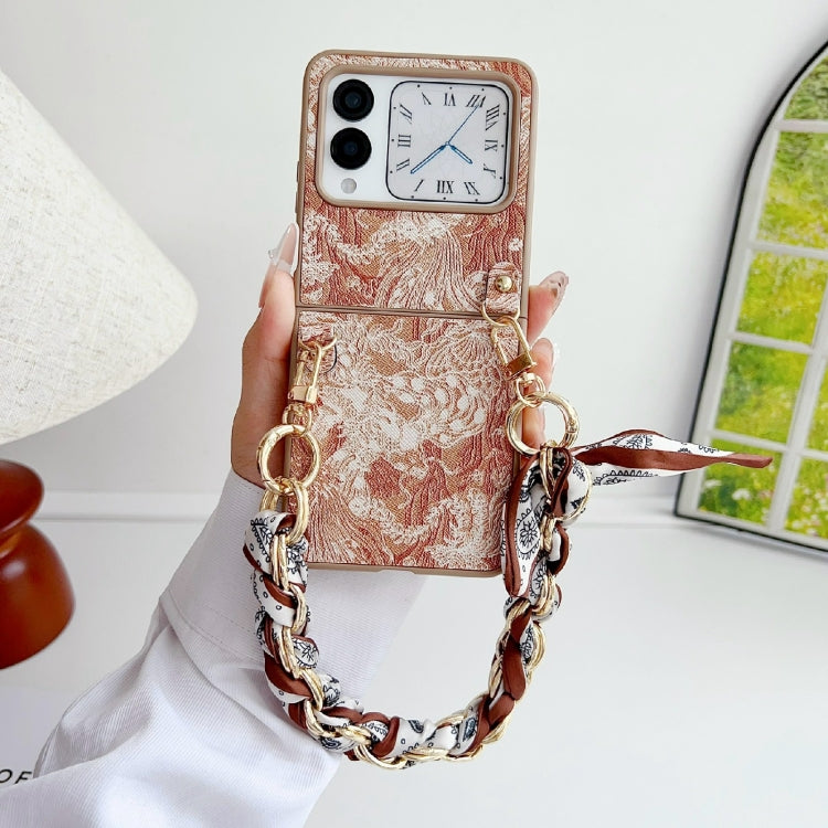 Funda para Teléfono Huawei Nova Flip con Cobertura Total Bordado Cadena y Anillo (Naranja)