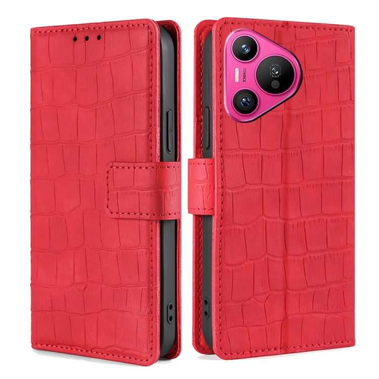 Funda para Huawei Pura 70 5G de Cuero con Cierre Magnético y Piel de Cocodrilo (Rojo)