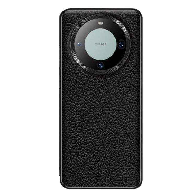 Funda de Teléfono Huawei Mate 60 Cuero Genuino Textura Litchi (Negro)