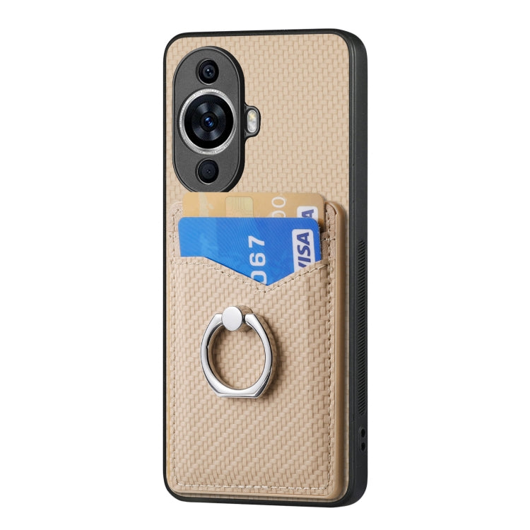 Funda para Huawei Nova 11 con Anillo y Billetera para Tarjeta de Fibra de Carbono (Caqui)
