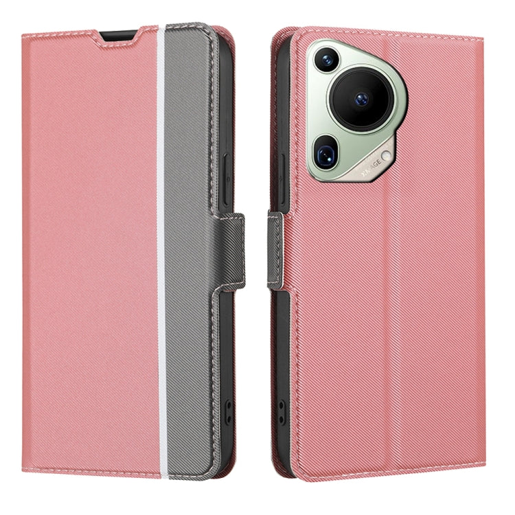 Funda de Cuero para Huawei Pura 70 Ultra 5G con Botón Lateral y Textura de Sarga (Rosa)
