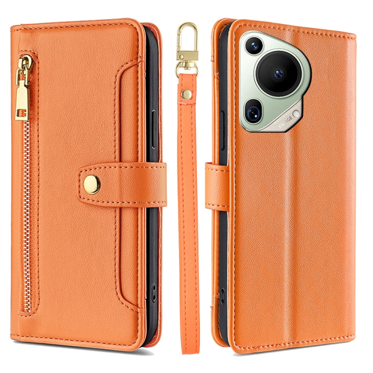 Funda de Cuero para Huawei Pura 70 Ultra 5G con Billetera, Cremallera y Textura de Oveja (Naranja)