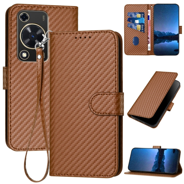 Funda de Cuero para Huawei Mate 60 Pro Yx0070 con Hebilla de Fibra de Carbono y Cordón (Café)