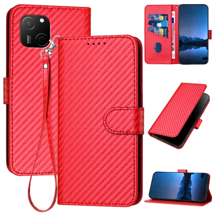 Funda de Cuero para Huawei P30 Yx0070 con Hebilla de Fibra de Carbono y Cordón (Rojo)