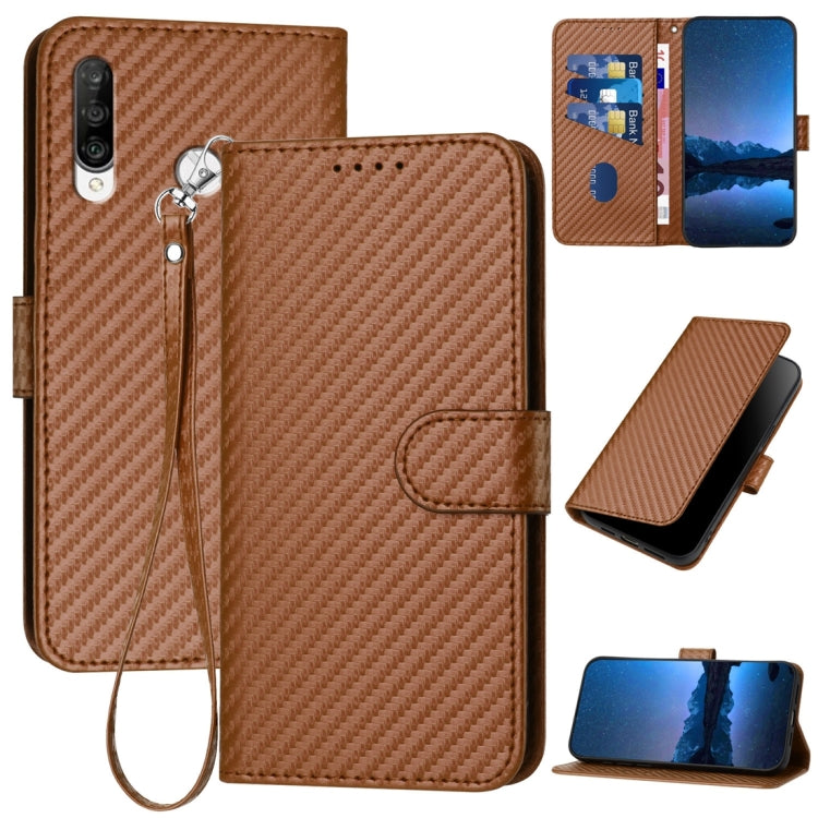 Funda de Cuero para Huawei P30 Lite / Nova 4E Yx0070 con Hebilla de Fibra de Carbono y Cordón (Café)
