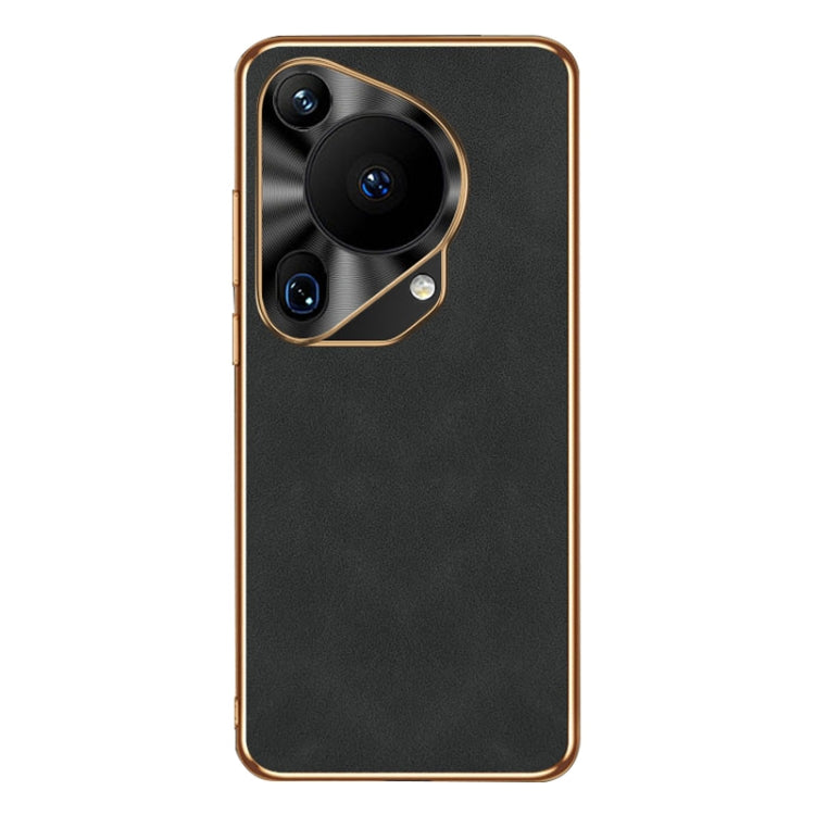 Funda para Huawei Pura 70 de Piel de Cordero con Galvanoplastia Ultra (Negro)