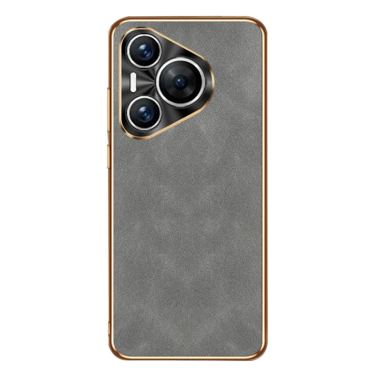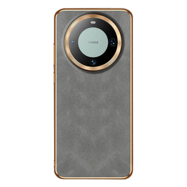 Funda de Cuero Piel de Cordero Galvanizada para Huawei Mate 60 (Gris)