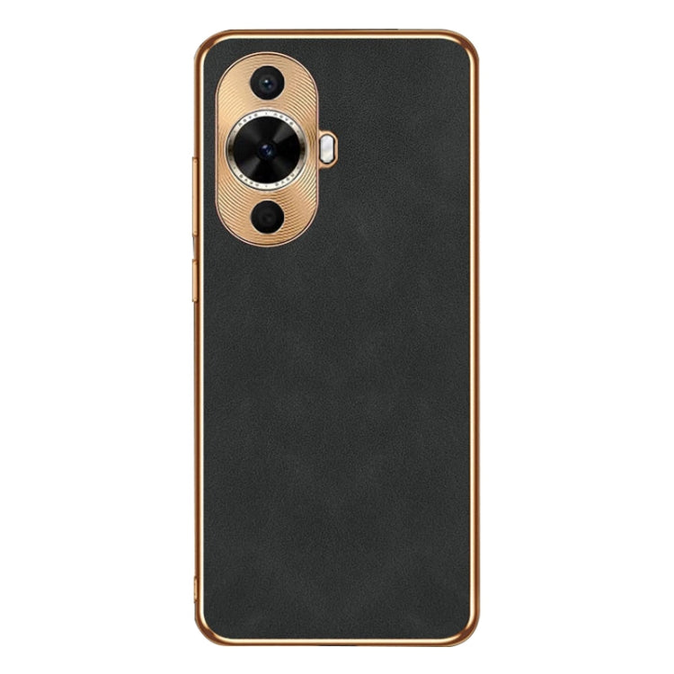Funda de Cuero Piel de Cordero Galvanizada para Huawei Nova 11 (Negro)