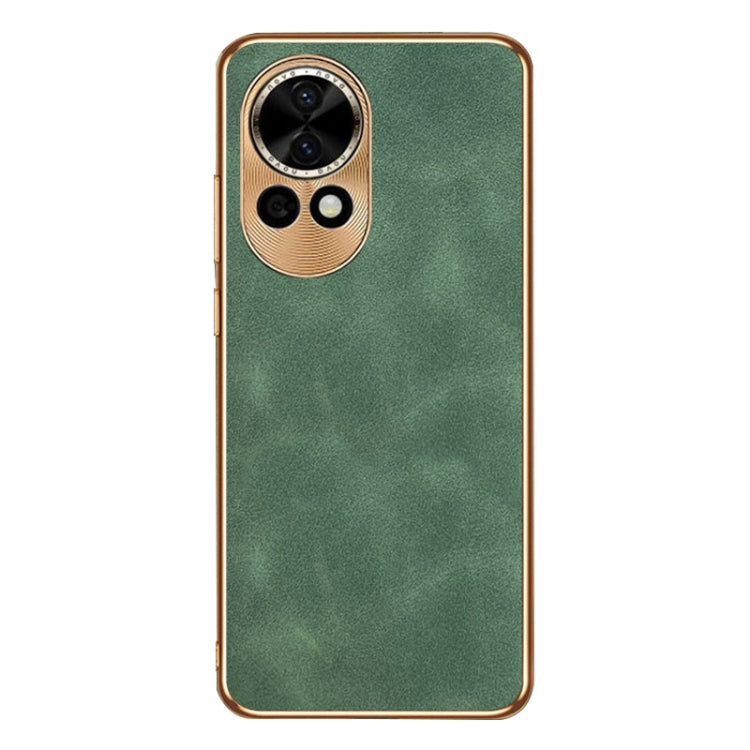 Funda de Cuero Piel de Cordero Galvanizada para Huawei Nova 12 (Verde)