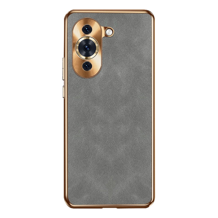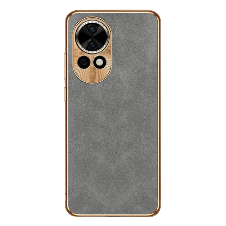 Funda de Cuero Piel de Cordero Galvanizada para Huawei Nova 11 (Gris)
