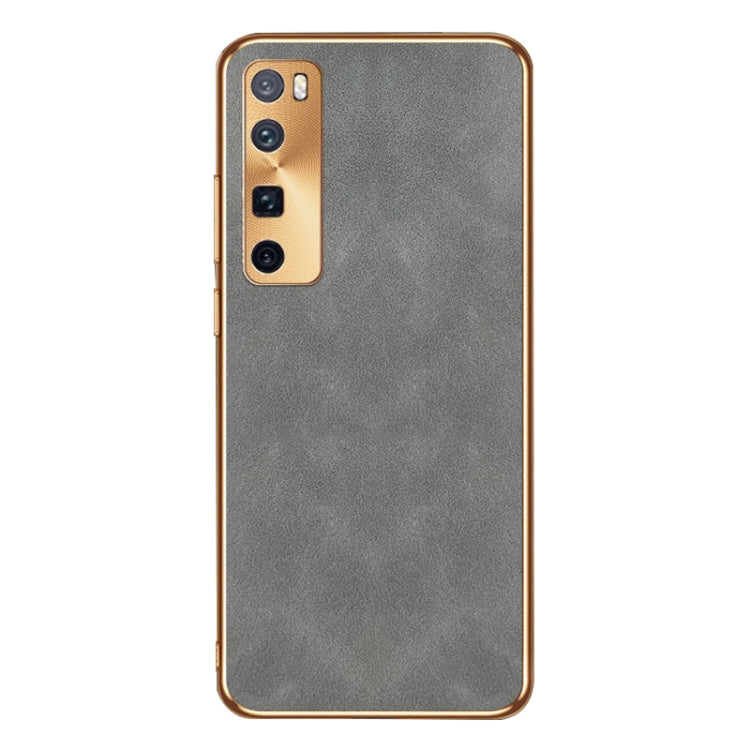 Funda para Huawei Nova 7 Pro Cuero de Piel de Cordero Galvanizada (Gris)
