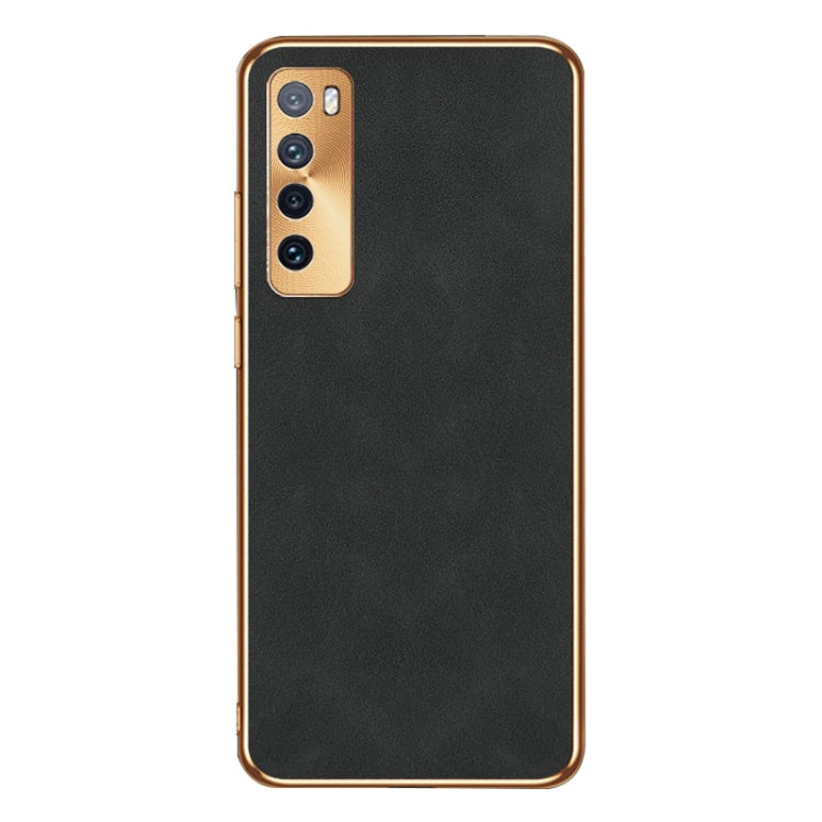 Funda de Cuero Piel de Cordero Galvanizada para Huawei Nova 7 Pro (Negro)