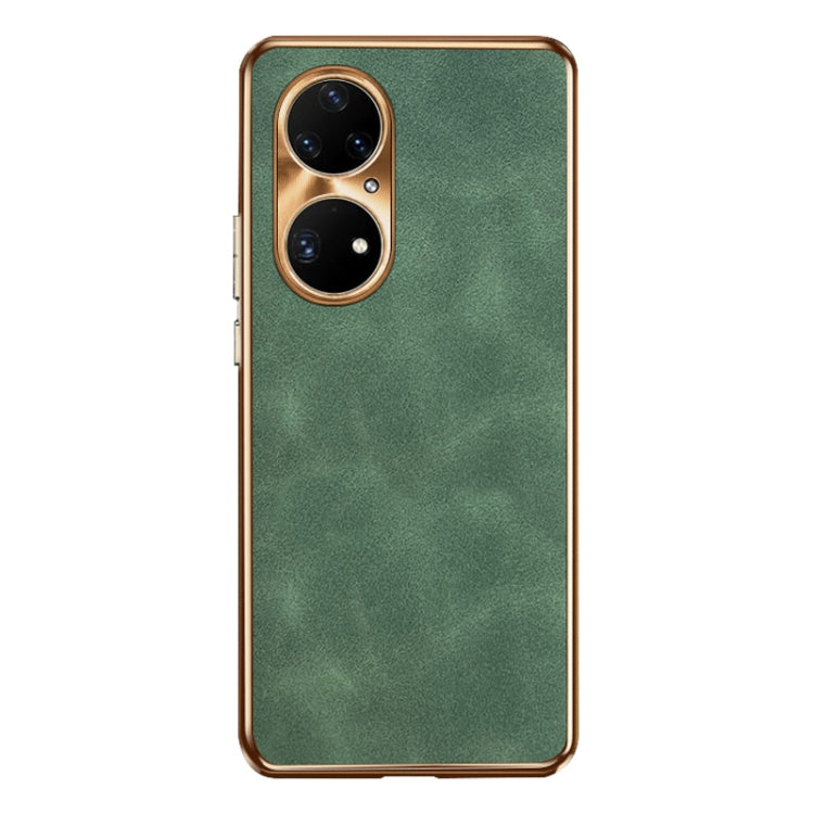 Funda de Cuero Piel de Cordero para Huawei P50 Pro Galvanizada (Verde)