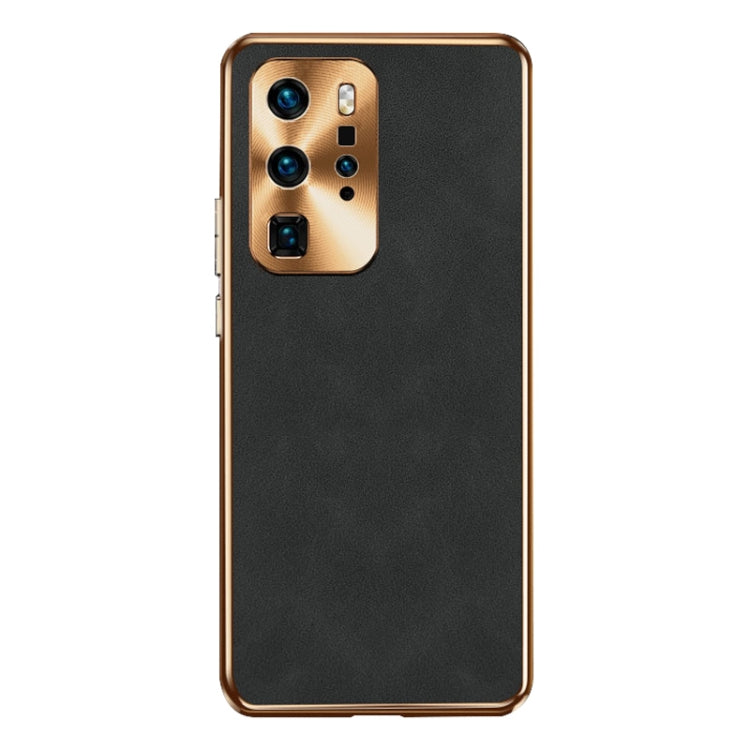 Funda de Cuero Piel de Cordero Galvanizada para Huawei P40 Pro (Negro)