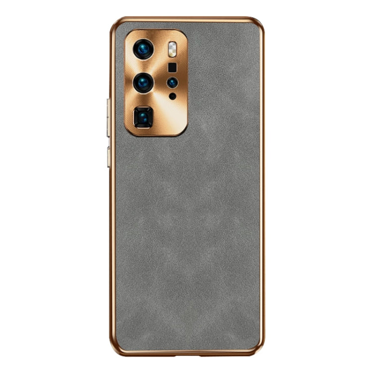 Funda de Cuero Piel de Cordero para Huawei P40 Pro Galvanizada (Gris)