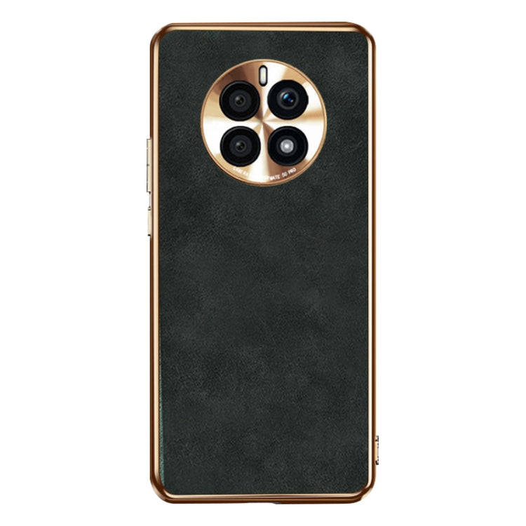 Funda de Cuero Piel de Cordero para Huawei Mate 50 Pro Galvanizada (Negro)