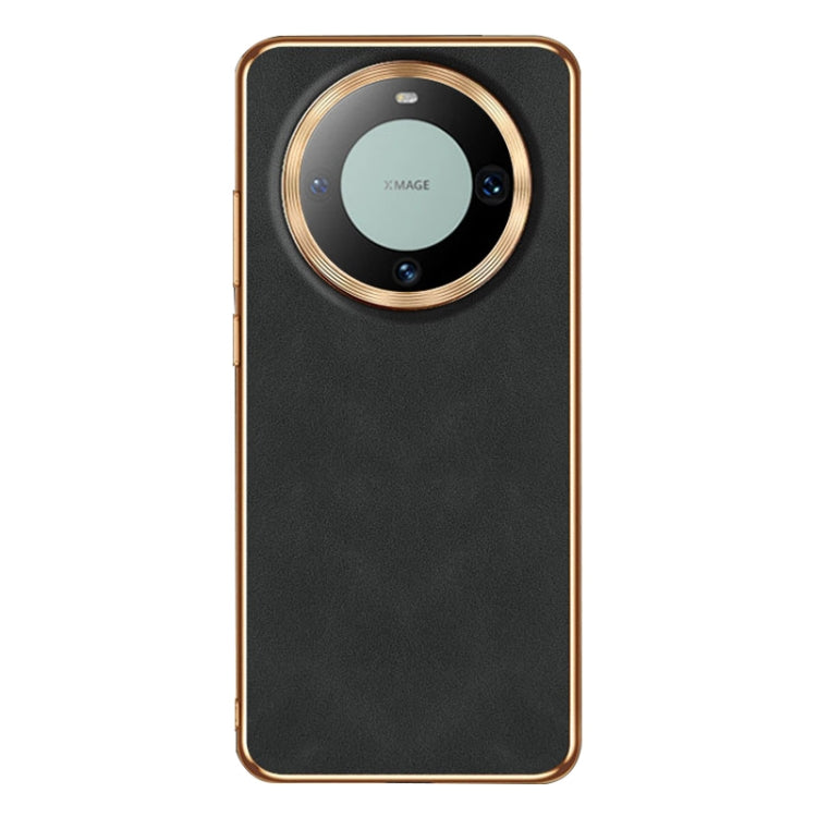 Funda de Cuero Piel de Cordero Galvanizada para Huawei Mate 60 (Negro)