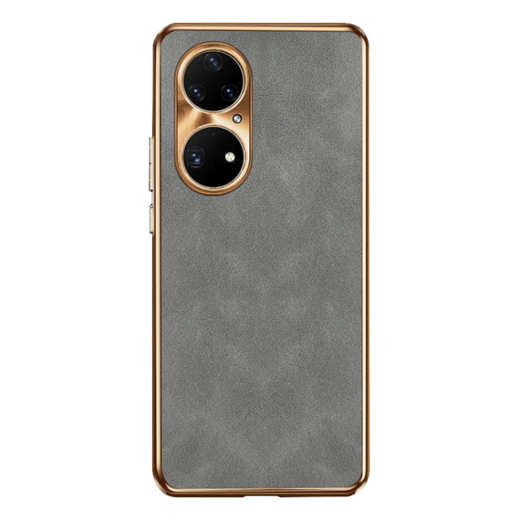 Funda de Cuero Piel de Cordero Galvanizada para Huawei P50 Pro (Gris)