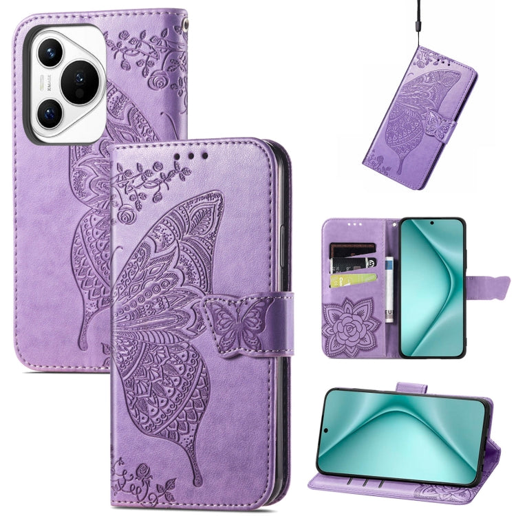 Funda de Cuero para Huawei Pura 70 Ultra Butterfly Love Flower en Relieve (Lavanda)