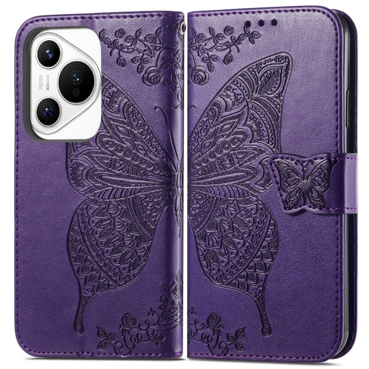 Funda de Cuero Huawei Pura 70 Pro Butterfly Love Flower en Relieve para Teléfono (Púrpura)