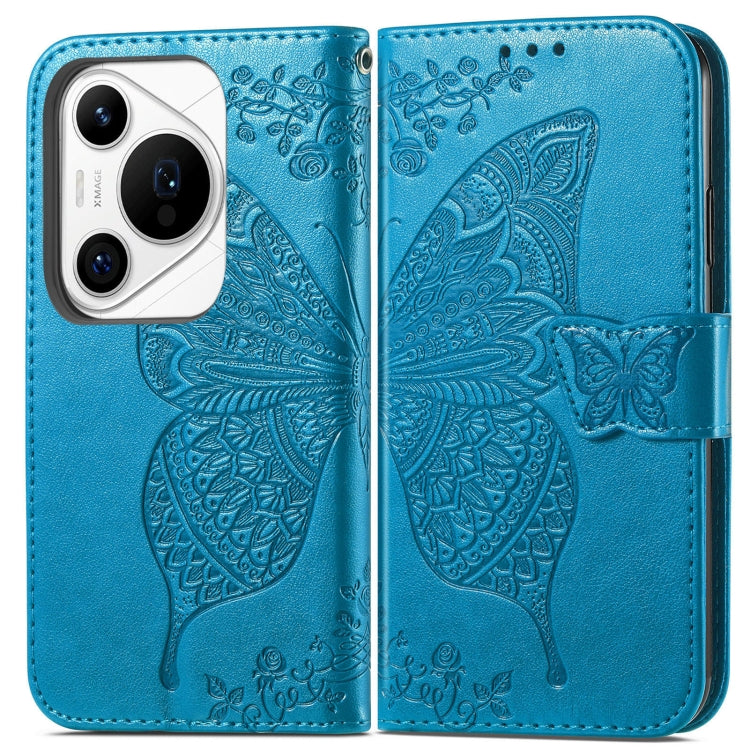 Funda de Cuero para Huawei Pura 70 Ultra Butterfly Love Flower en Relieve (Azul)