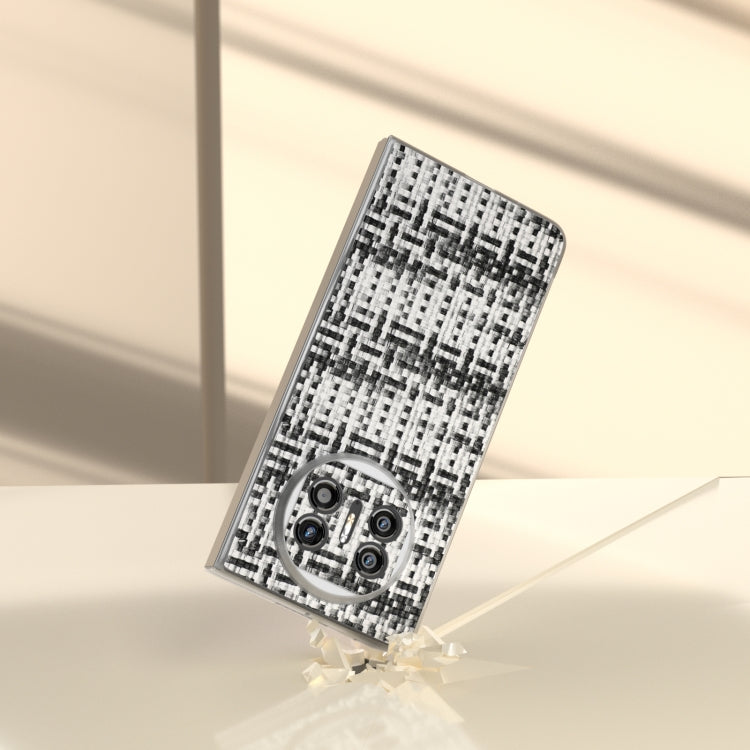 Funda para Huawei Mate X5 Caja de PU con Marco Translúcido Esmerilado y Textura Rómbica (Blanco Negro)