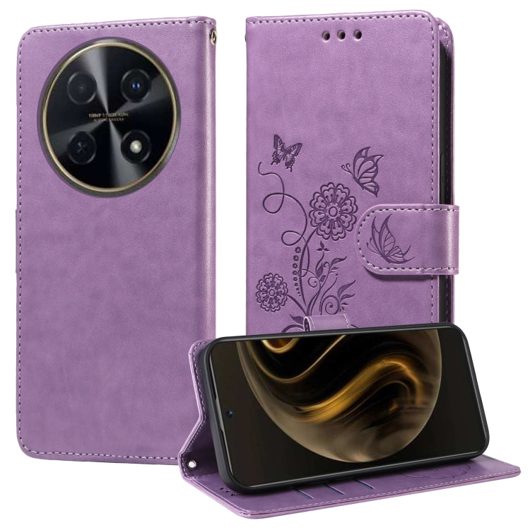 Funda de Cuero para Huawei Nova 12 Se 4G con Diseño de Mariposas y Flores en Relieve (Morado)